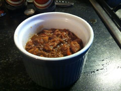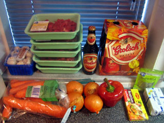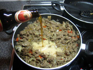 5. En dan nu het belangrijkste ingrediënt: Bierrrr. Ik gebruik hiervoor Grolsch herfstbok, maar het werkt ook prima met Leffe dubbel, of Gerardus kloosterbier. Euroshopper pilsener of Schultenbrau op eigen risico.