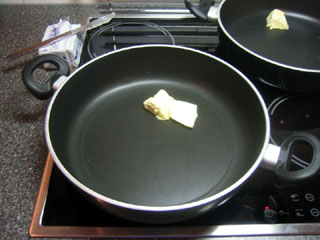 1. Smelt een klont boter in een braadpan of koekenpan.