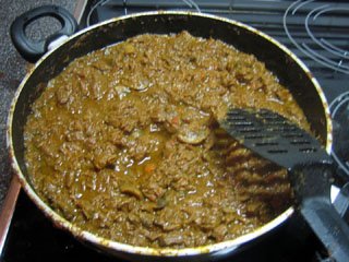 Hierna is het wachten tot sint juttemis, doorgaans zo'n 4 tot 6 uur. In deze tijd zal dit verworden tot een ondetermineerbare bruine massa. Als het bier opraakt voordat het vlees desintegreert: meer bier. Neemt u zelf ook wat. En roert u zo af en toe (eens in het half uur is wel best).