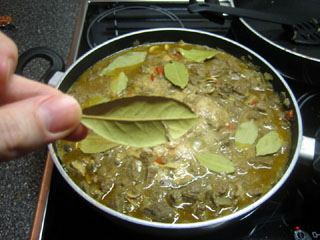 6. Voeg enkele laurierbladeren toe. Neem de meest hele, zodat ze niet per ongeluk gaan afbrokkelen tijdens het roeren. Een verstandig mens schrijft nu op hoeveel erin gaan, opdat er even zoveel weer uit komen, later.